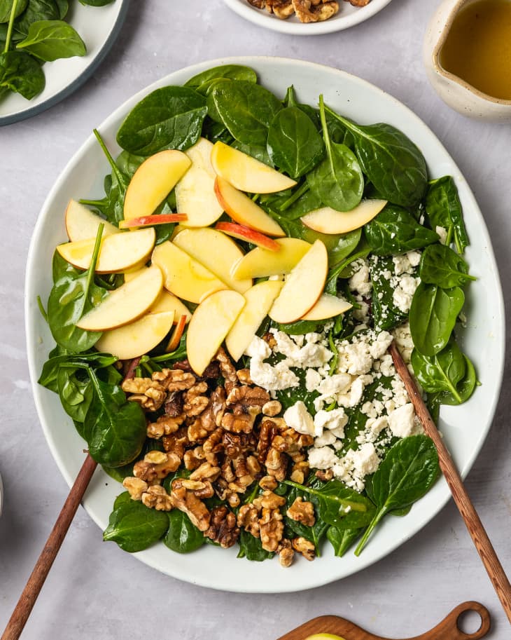 My Favorite Apple Spinach Salad Gimme Some Oven from www.gimmesomeoven.com The spinach wilts quickly once it comes into contact with vinaigrette, so store. If you like this spinach fruit salad recipe, please share with your friends and family. Spinach recipes come in handy at breakfast, lunch, and dinner. Top with orange segments and avocados. Make it ahead, refrigerate and then toss right before serving. An easy, cheesy, vegetarian(!) lasagna recipe that doesn't require you to dirty every pot and pan in your kitchen. Spinach salad recipes are surprisingly diverse. Spinach is another incredible cooking ingredient that is very flexible, and, accordingly, can be utilized in a wide range of dishes.